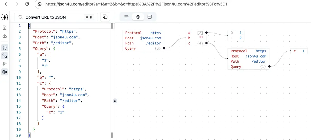 - Paste the URL with query parameters into the left editor;